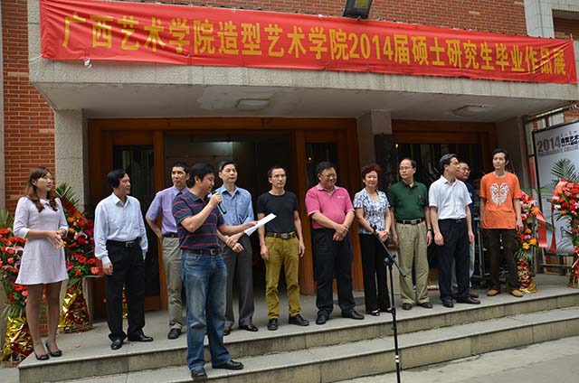 伴随着清晨和煦的轻风,造型艺术学院2014届硕士研究生毕业作品展于2014年4月21日上午在广西艺术学院南湖校区美术馆整正式拉开了帷幕,举行了欢快而热烈的开幕式。展览作品得到了学院领导以及各部门领导老师的高度重视,学院领导邓军书记、禤思副书记、副院长、黄志豪副院长、陈应鑫副院长、李沛新副书记、纪委书记、研究生处王晓宁处长、科研处刘新处长、艺术教育学院刘南一书记、造型艺术学院领导老师共同出席了开幕式并参观了毕业生作品,并且有幸邀请到广西艺术学院院长黄格胜教授为展览题词。