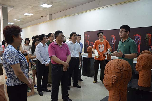 造型艺术学院张燕根副院长为学院领导嘉宾介绍毕业生作品