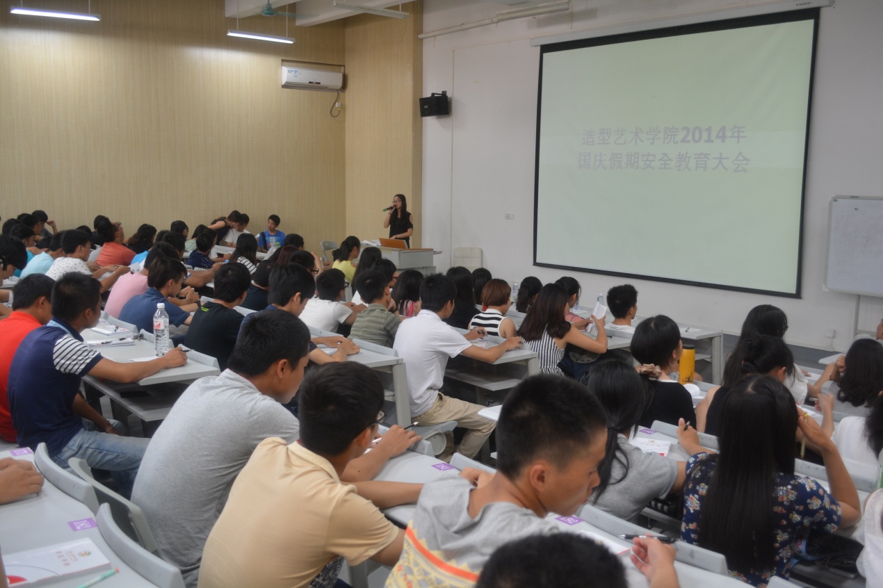 为了进一步做好2014年国庆假期学生的安全教育工作,强化2014级新生对安全知识的学习,增强安全意识,造型艺术学院于9月30日上午9:30在相思湖校区2201教室召开了国庆假期安全教育大会。造型艺术学院辅导员、全体2014级新生参加了大会。