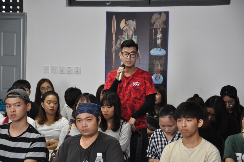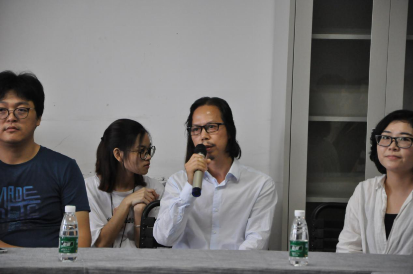 在交流会中,双方还进行了互相提问解答,针对就业地点的选择,作品与产品之间的取向等问题进行了深入的讨论,吴教授对同学们讲述,在多元化的社会中,作品与商品不应区分太开,作品应当保留自己的个性使作品具有艺术审美又又有商业价值,呼吁同学们做好作品,使同学们对艺术价值与商业价值有了更深刻的思考与认识。我院丁硕赜老师与同学代表也关于艺术的跨界与合作进行了阐述,向同学们提出了艺术融合科技,善于运用不同的艺术表达形式应用到将来的艺术作品或是景观,建筑等方面的观点,开阔了同学们艺术创作的眼光以及对材料应用的思考。